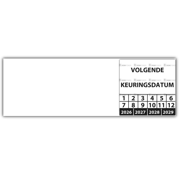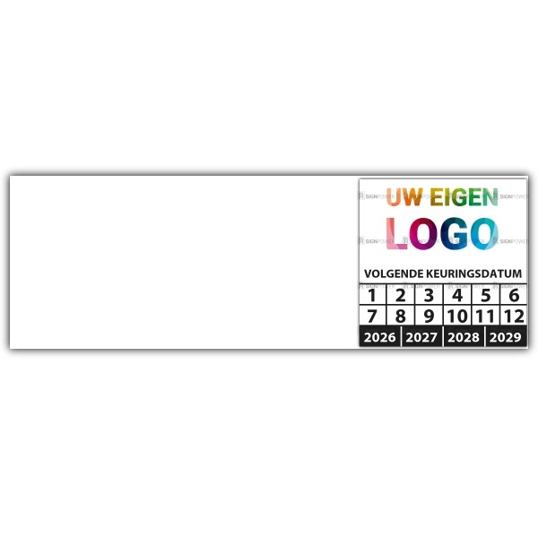 Ook voor de kabelkeuringssticker "volgende keuringsdatum" geldt dat u gratis uw eigen logo kan laten meedrukken, upload online uw logo en zie direct live de digitale drukproef.