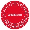 De keuringssticker "afgekeurd" (met datum) heeft een diameter van 20mm, 30mm of 40mm. U kunt tevens kiezen voor een begin jaartal en het aantal keuringsstickers op rol.
