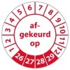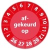 De keuringssticker "afgekeurd op" heeft een diameter van 20mm, 30mm of 40mm. U kunt tevens kiezen voor een begin jaartal en het aantal keuringsstickers op rol.