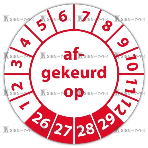 In de categorie keuringsstickers op rol is de keuringssticker "afgekeurd op" een veel gebruikte zelfklevende sticker. Het is volgens de wet vereist dat een bewijs van de uitgevoerde keuring op de werkplek aanwezig moet zijn. Een keuringsstickers op rol gemaakt van een (matte) niet scheurbaar PP vinyl is daarvoor de meest praktische oplossing. Indien de sticker in aanraking komt met vocht adviseren wij een laminaatlaag over de stickers te laten aanbrengen, dit verlengt tevens de levensduur van de stickers.