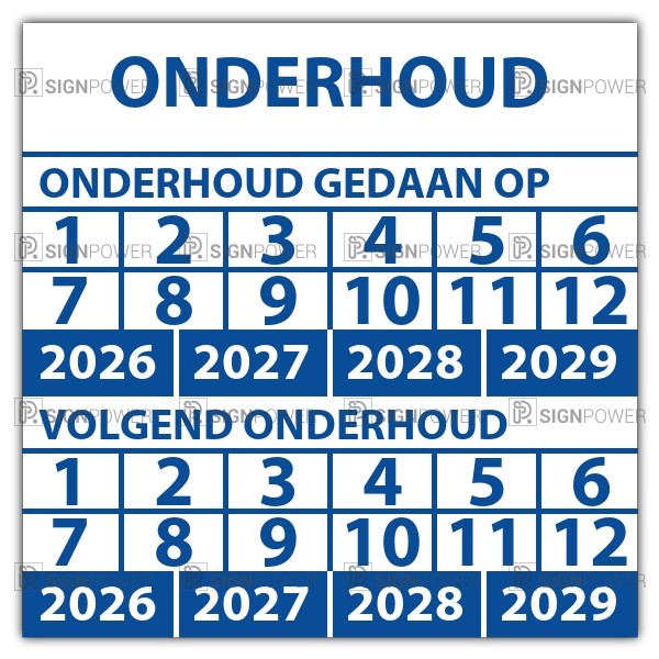 Keuringssticker dubbel "onderhoud" vierkant