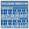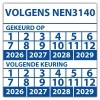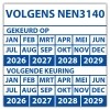 • Keuringssticker dubbel "volgens NEN 3140"