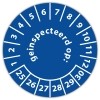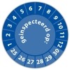 De keuringssticker "geinspecteerd op" heeft een diameter van 20mm, 30mm of 40mm. U kunt tevens kiezen voor een begin jaartal en het aantal keuringsstickers op vel.