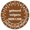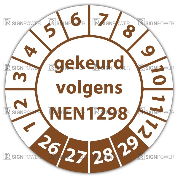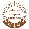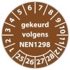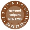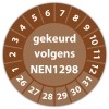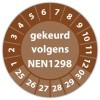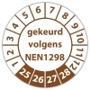 De keuringssticker "gekeurd volgens nen 1298" heeft een diameter van 20mm, 30mm of 40mm. U kunt tevens kiezen voor een begin jaartal en het aantal keuringsstickers op rol.