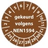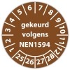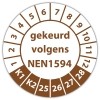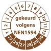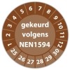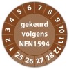 De keuringssticker "gekeurd volgens nen 1594" heeft een diameter van 20mm, 30mm of 40mm. U kunt tevens kiezen voor een begin jaartal en het aantal keuringsstickers op rol.