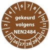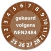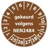 Ook voor de keuringssticker "gekeurd volgens nen 2484" geldt dat u gratis uw eigen logo kan laten meedrukken, upload online uw logo en zie direct live de digitale drukproef.