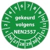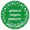 Keuringssticker "gekeurd volgens NEN 2557" op rol
