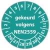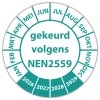 In de categorie keuringsstickers op vel is de keuringssticker "gekeurd volgens nen 2559" een veel gebruikte zelfklevende sticker. Het is volgens de wet vereist dat een bewijs van de uitgevoerde keuring op de werkplek aanwezig moet zijn. Een keuringsstickers op vel gemaakt van een (matte) niet scheurbaar PP vinyl is daarvoor de meest praktische oplossing. Indien de sticker in aanraking komt met vocht adviseren wij een laminaatlaag over de stickers te laten aanbrengen, dit verlengt tevens de levensduur van de stickers.