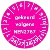 De keuringssticker "gekeurd volgens nen 2767" heeft een diameter van 20mm, 30mm of 40mm. U kunt tevens kiezen voor een begin jaartal en het aantal keuringsstickers op rol.