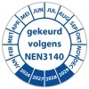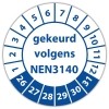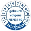 keuringssticker voor het keuren /controleren van elektrische installaties als gereedschappen, machines volgens de norm NEN3140 te leveren op zelfklevend vinyl . standaard uitvoering of met eigen tekst en/of logo in diverse vormen en maten