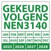Keuringssticker "gekeurd volgens NEN 3140" vierkant