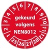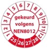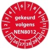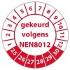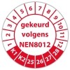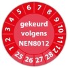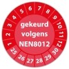 De keuringssticker "gekeurd volgens nen 8012" heeft een diameter van 20mm, 30mm of 40mm. U kunt tevens kiezen voor een begin jaartal en het aantal keuringsstickers op rol.