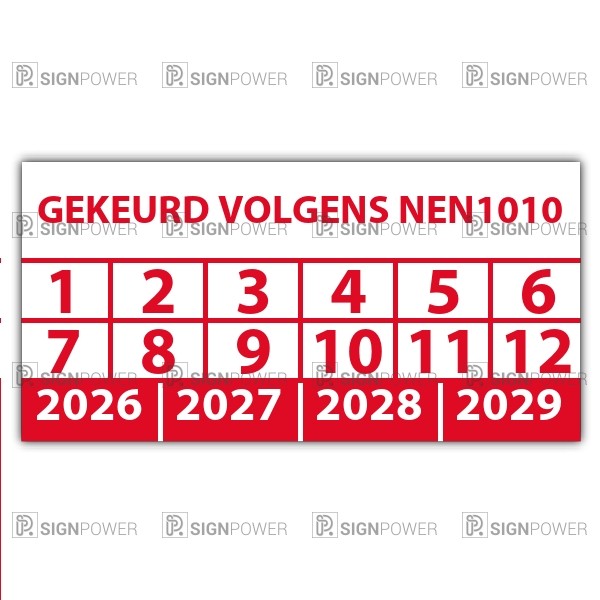 • Keuringssticker "gekeurd volgens nen1010"