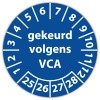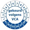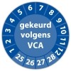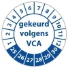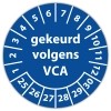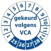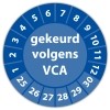 De keuringssticker "gekeurd volgens vca" heeft een diameter van 20mm, 30mm of 40mm. U kunt tevens kiezen voor een begin jaartal en het aantal keuringsstickers op vel.