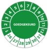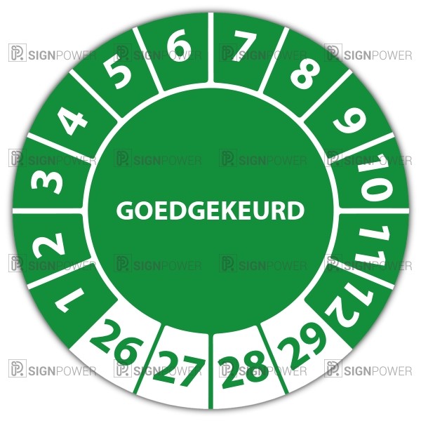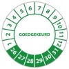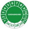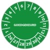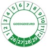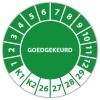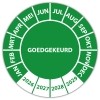 De keuringssticker "goedgekeurd" (met datum) heeft een diameter van 20mm, 30mm of 40mm. U kunt tevens kiezen voor een begin jaartal en het aantal keuringsstickers op vel.