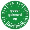 De keuringssticker "goedgekeurd op" heeft een diameter van 20mm, 30mm of 40mm. U kunt tevens kiezen voor een begin jaartal en het aantal keuringsstickers op rol.