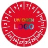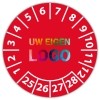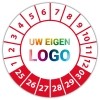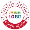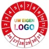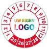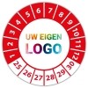 De keuringssticker "met uw logo" heeft een diameter van 20mm, 30mm of 40mm. U kunt tevens kiezen voor een begin jaartal en het aantal keuringsstickers op vel.