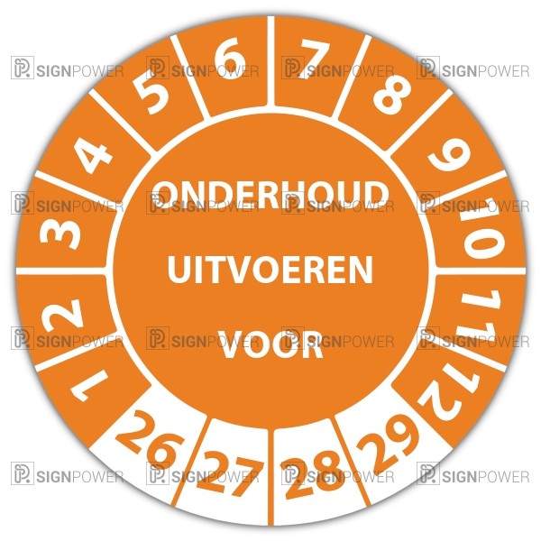 • Keuringssticker "onderhoud uitvoeren voor"