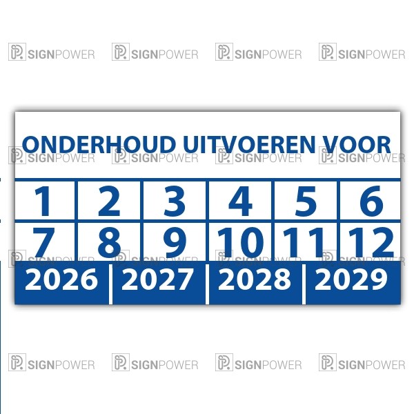 • Keuringssticker "onderhoud uitvoeren voor"