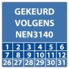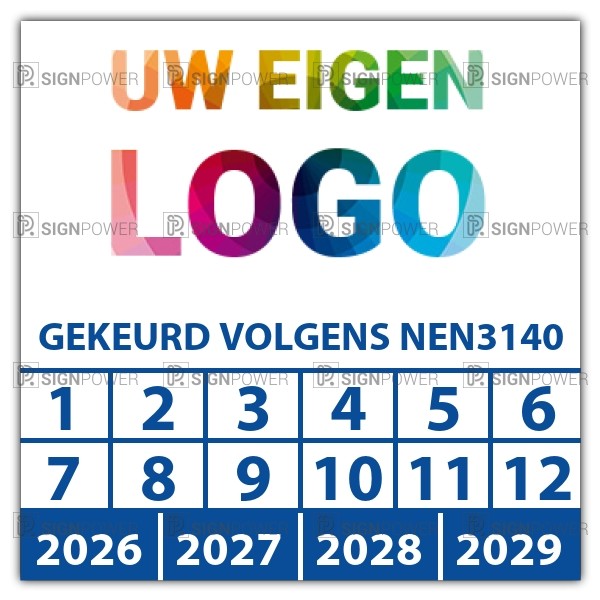 Ook voor de keuringssticker ultra destructable "gekeurd volgens nen 3140" geldt dat u gratis uw eigen logo kan laten meedrukken, upload online uw logo en zie direct live de digitale drukproef.