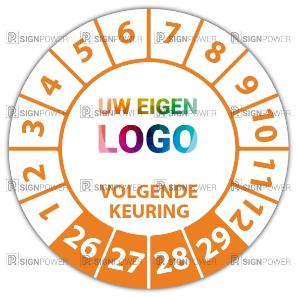 Ook voor de keuringssticker ultra destructable "volgende keuringsdatum" geldt dat u gratis uw eigen logo kan laten meedrukken, upload online uw logo en zie direct live de digitale drukproef.