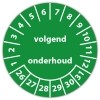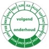 In de categorie keuringsstickers op rol is de keuringssticker "volgend onderhoud" een veel gebruikte zelfklevende sticker. Het is volgens de wet vereist dat een bewijs van de uitgevoerde keuring op de werkplek aanwezig moet zijn. Een keuringsstickers op rol gemaakt van een (matte) niet scheurbaar PP vinyl is daarvoor de meest praktische oplossing. Indien de sticker in aanraking komt met vocht adviseren wij een laminaatlaag over de stickers te laten aanbrengen, dit verlengt tevens de levensduur van de stickers.