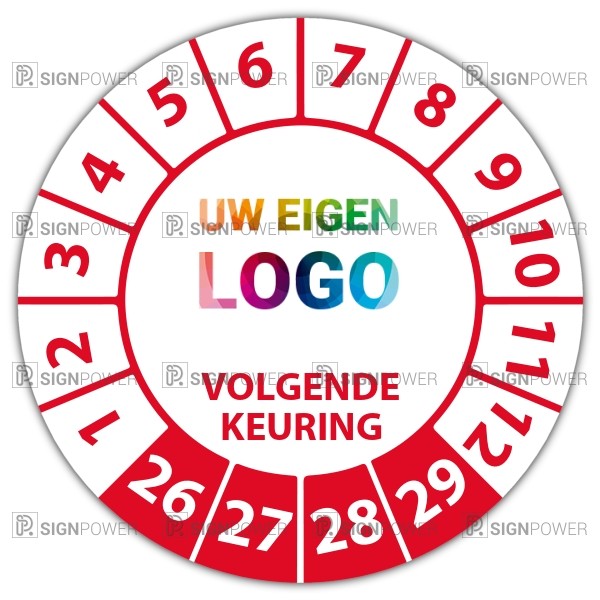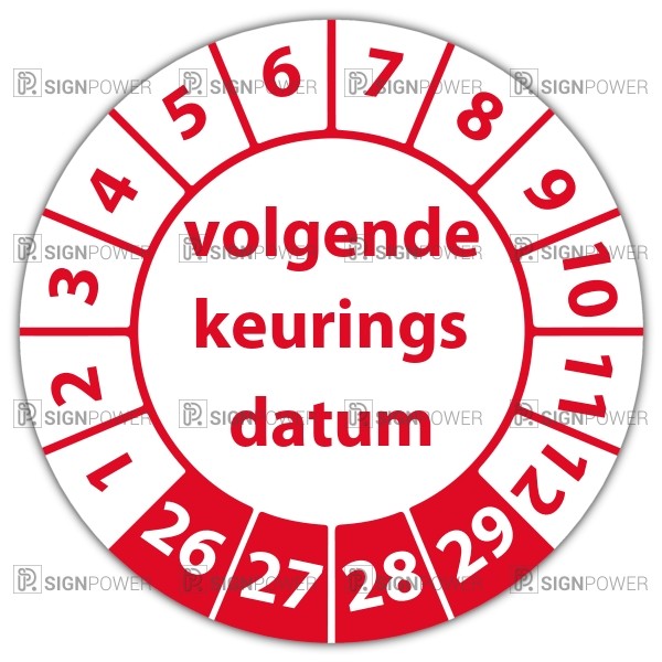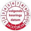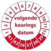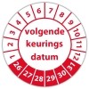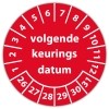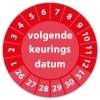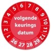 De keuringssticker "volgende keuringsdatum" heeft een diameter van 20mm, 30mm of 40mm. U kunt tevens kiezen voor een begin jaartal en het aantal keuringsstickers op vel.