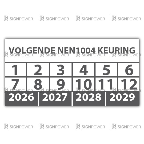 • Keuringssticker "volgende NEN 1004 keuring"
