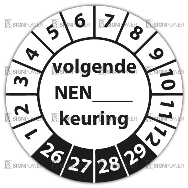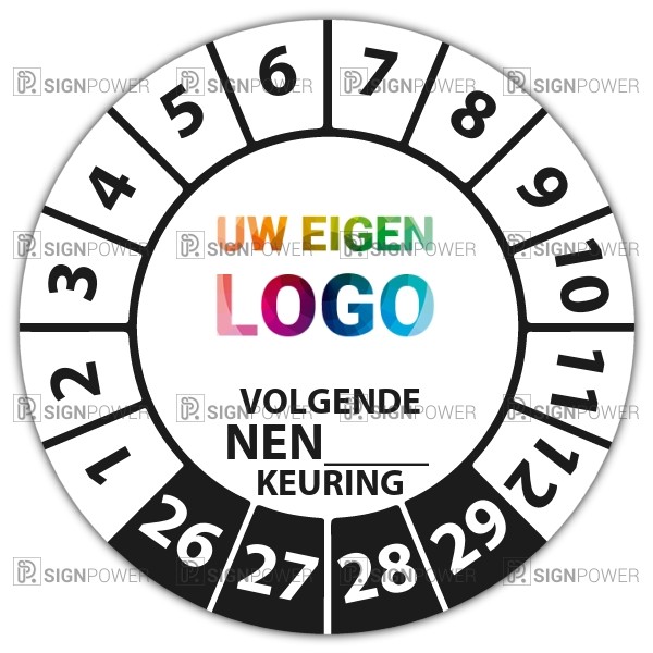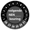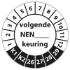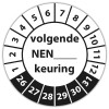 De keuringssticker volgende nen-norm keuring (eigen invoer) heeft een diameter van 20mm, 30mm of 40mm. U kunt tevens kiezen voor een begin jaartal en het aantal keuringsstickers op rol.