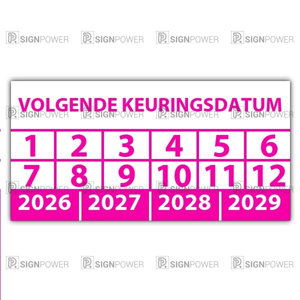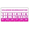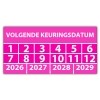 In de categorie kunt u zelf de tekst kleur en lettertype bepalen. Rechthoek, ovaal, rond of vierkant in diverse maten. De keuringssticker "volgende keuringsdatum" is gedrukt op een (matte) zelfklevend niet scheurbaar PP vinyl. Ten op zichte van papieren stickers zijn deze watervast. Uw stickers worden afgeleverd in een handig doosje